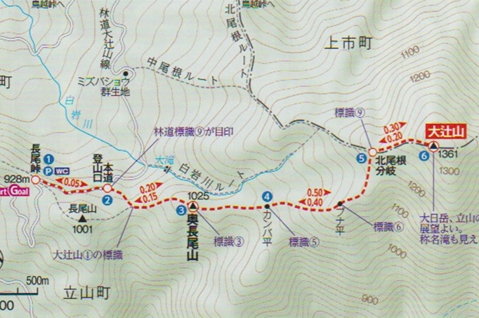 長尾峠 〜 長尾山 〜 奥長尾山 〜 大辻山 〜 登山口 (往復)