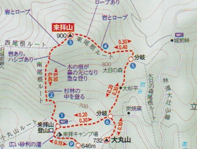 駐車場 〜 登山口 〜 来拝山 〜 城前峠分岐 〜 登山口 (周回)