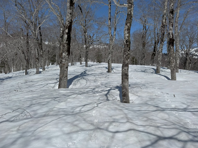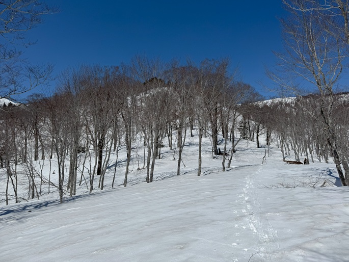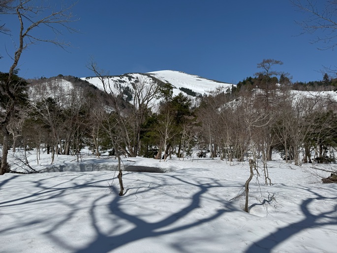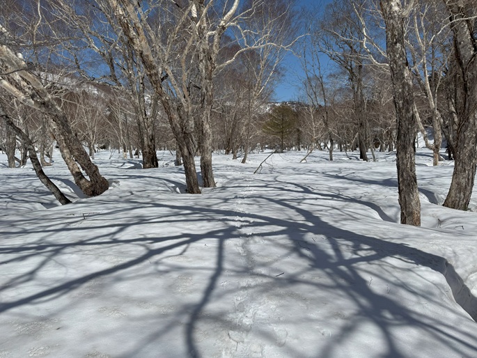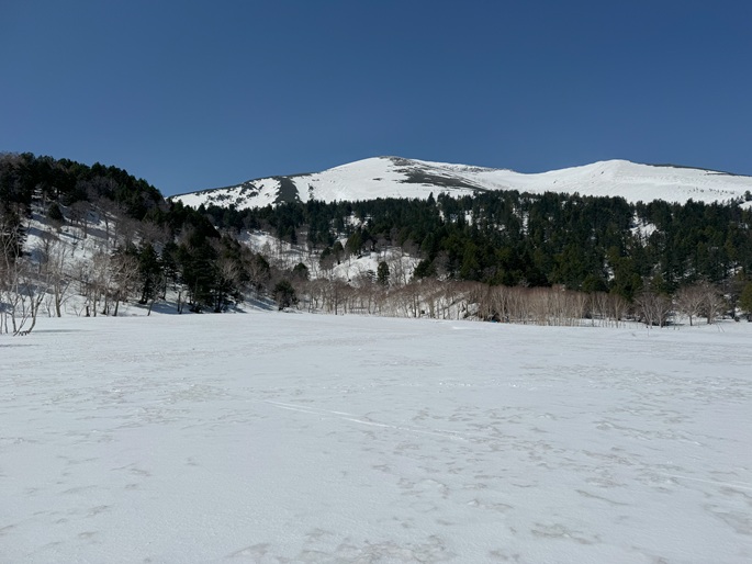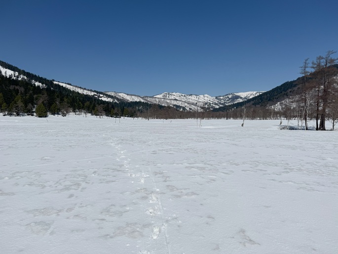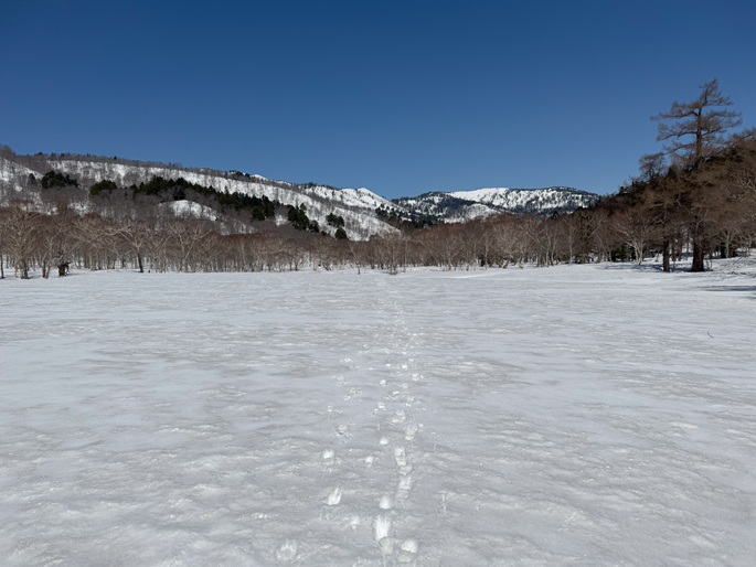 景鶴山から与作岳を経て尾瀬ケ原に下るルートはトレースが濃く、ヨッピ吊橋から山ノ鼻までの単調な雪原歩きと山ノ鼻から鳩待峠への登り返しは目標を見失った身には堪えた。
