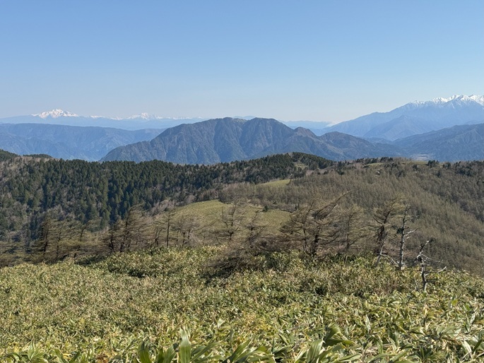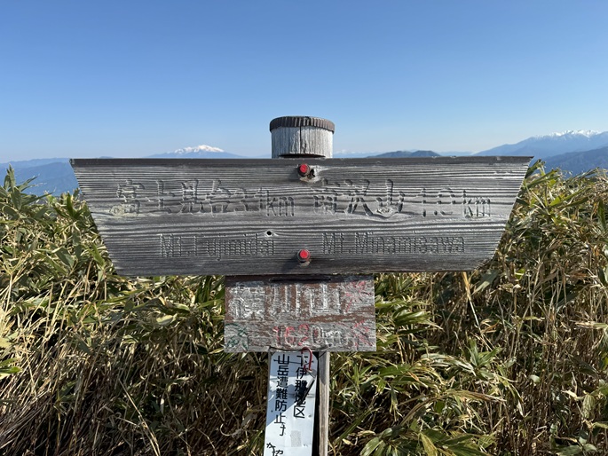 岐阜県中津川市・長野県阿智村の南沢山(1564m*ぎふ百山)を登り、隣接する横川山(1620m)まで足を伸ばした。 登山道はハイキングコースのように良く整備されていて、三角点が置かれた横川山の方が山頂からの展望が良かった。