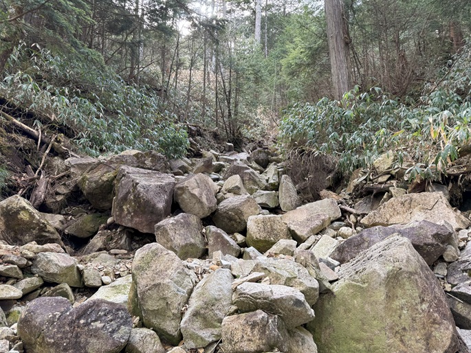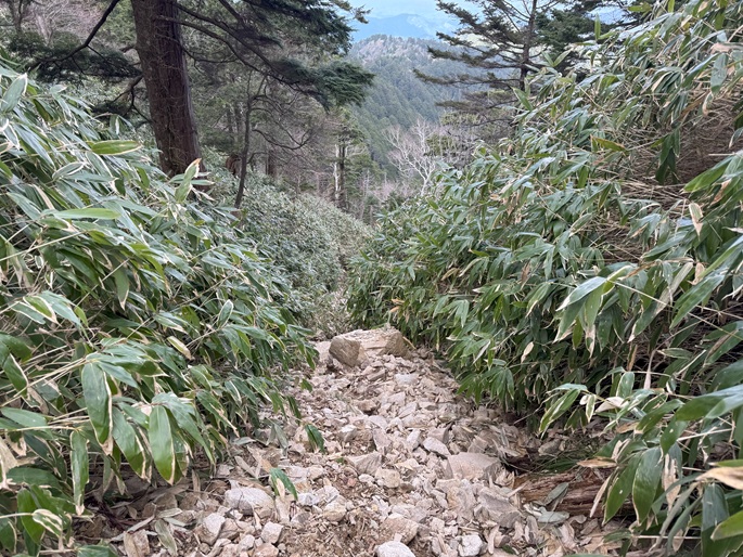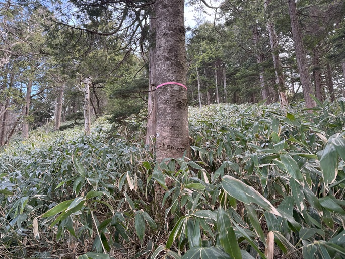 岐阜県中津川市・南木曽町の井出小路山(1840m*ぎふ百山)と高樽山(1672m*ぎふ百山)を継続して登った。 両山共に取付きまでの林道歩きが長いばかりか登山道がないため猛烈な笹薮漕ぎを強いられ、歩行距離36キロ・標高差2100m・14時間ほどの行動時間を要した。