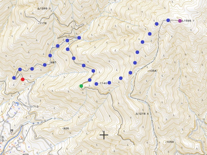 岐阜県中津川市の三界山(1599m*ぎふ百山)を登った。 地形図に記されている登山道は荒廃してしまったようで、林道の途中から顕著な尾根を辿る新しい登山道を登った。 地形図に山名が記されていない寂峰だが、雑木に囲まれた地味な山頂には一等三角点が置かれていた。