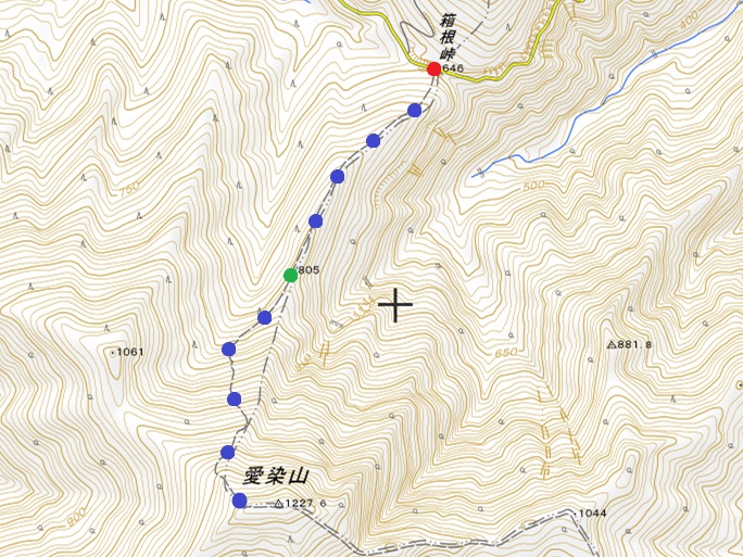 箱根峠登山口 〜 805m地点 〜 愛染山 (往復)