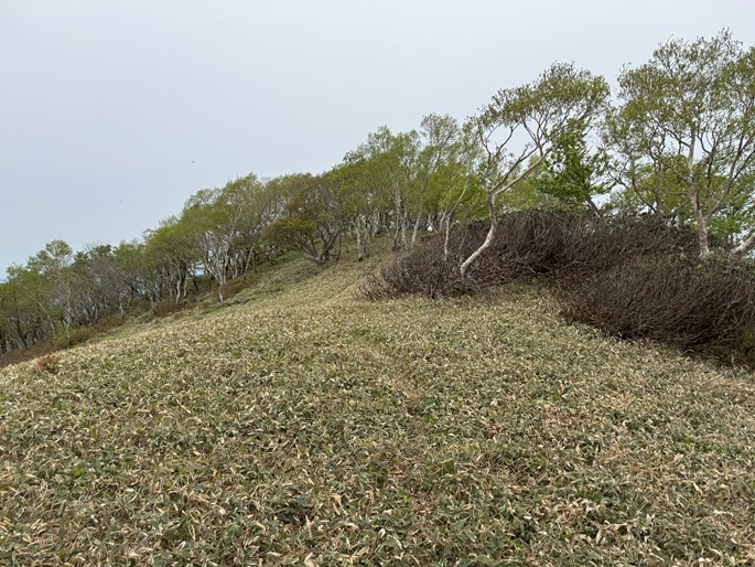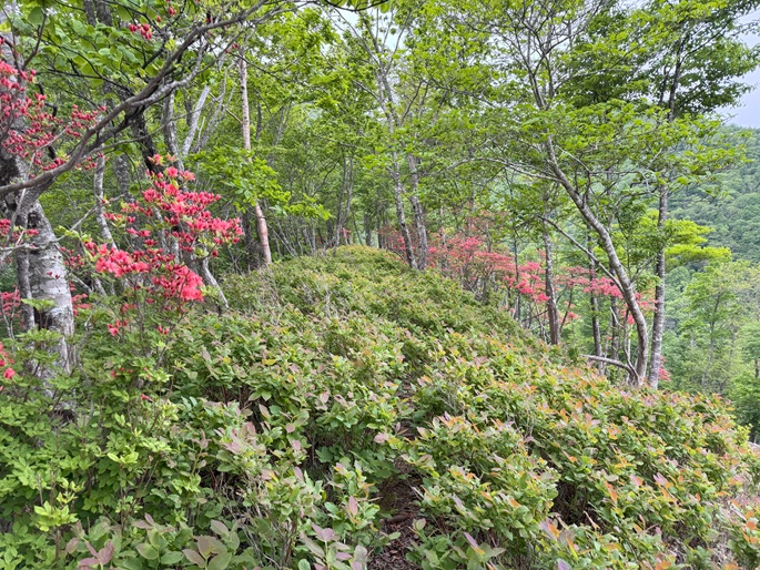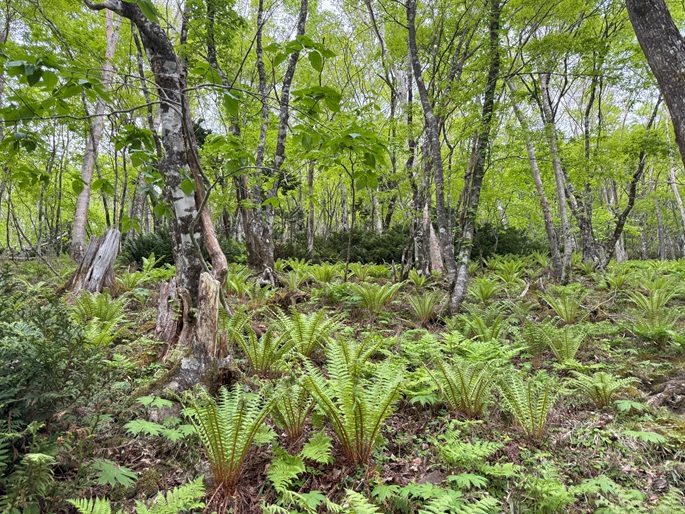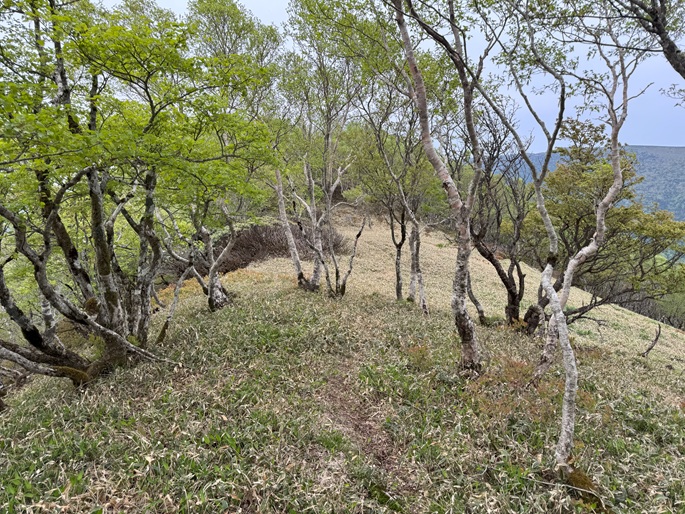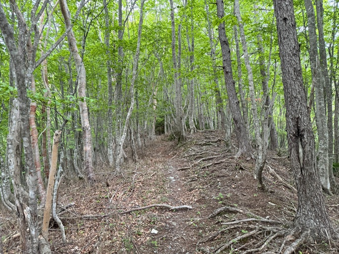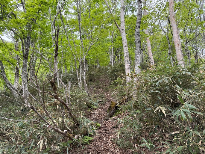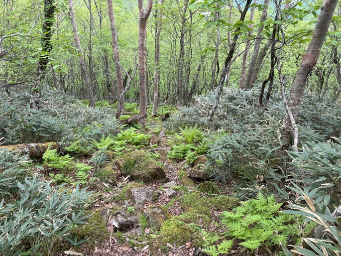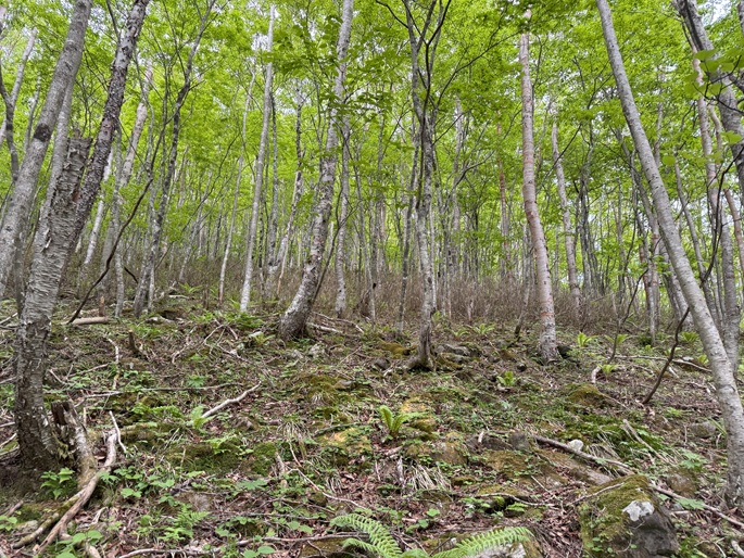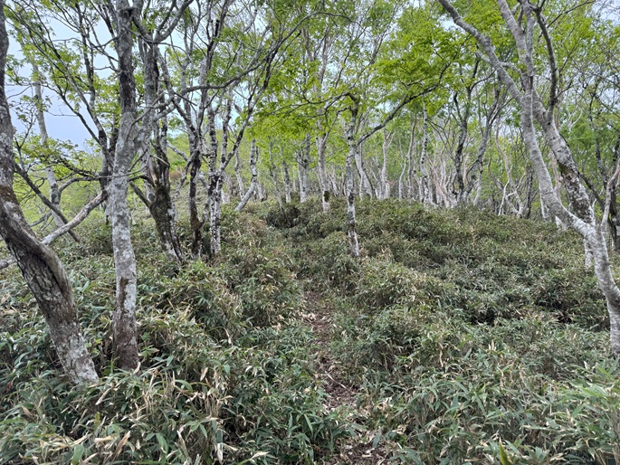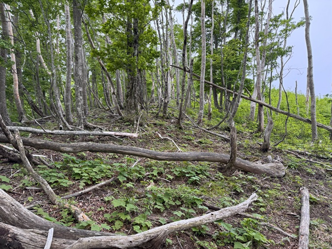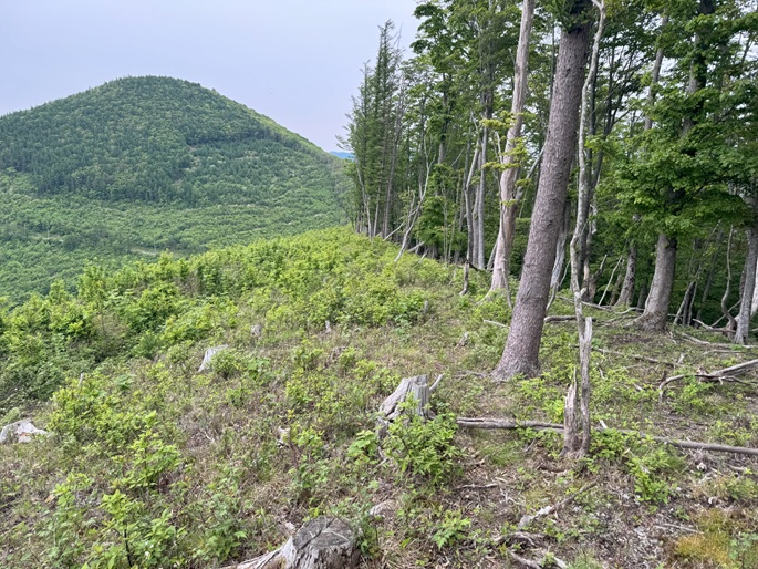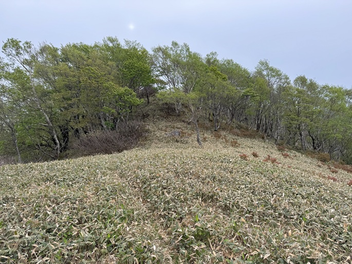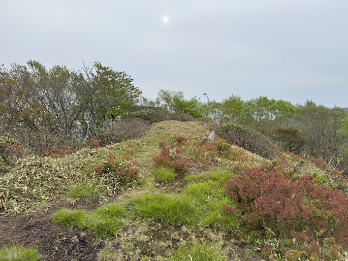 岩手県釜石市・住田町の愛染山(1228m*岩手百名山)を登った。 登山道は粗野だったが新しいピンクリボンが多くて薮はなかった。 山頂一帯は背の低い笹原になっていてシカの姿が多く見られた。
