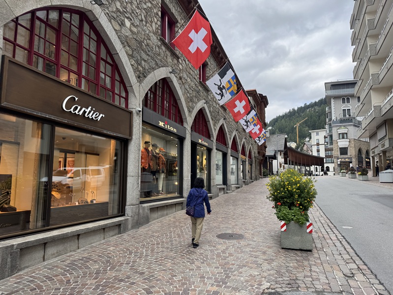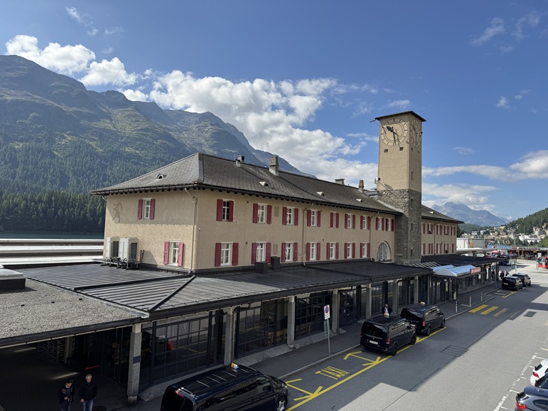 8月22日、アパートからメセラーランデス街道・A12号線(インタール・アウトバーン)・180号線を1時間20分(90キロ)走ってスイスとの国境を通過し、国境から27号線を1時間40分(90キロ)走って21年ぶりとなるサン・モリッツに着いた。 高級ブランドの店が並ぶサン・モリッツの市内の銀行でスイスフランの旧紙幣を新紙幣に交換し、スイーツや土産物店を物色してから27号線・29号線を30分(20キロ)走って着いた登山口のオスピツィオ・ベルニナ駅付近には有料(1時間1スイスフラン)の駐車場があった。 世界遺産に登録されたレーティッシュ鉄道のオスピツィオ・ベルニナ駅は21年前に行ったハイキングの起点とした駅で懐かしかった。
