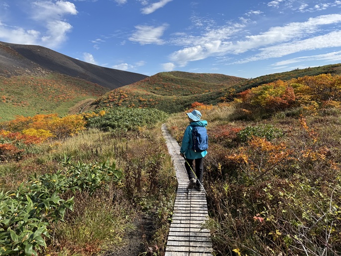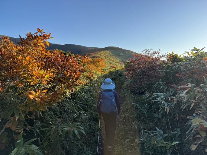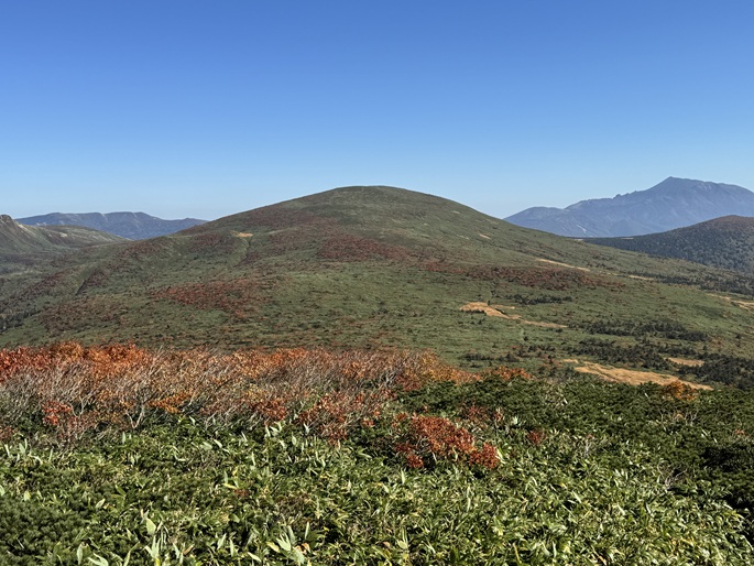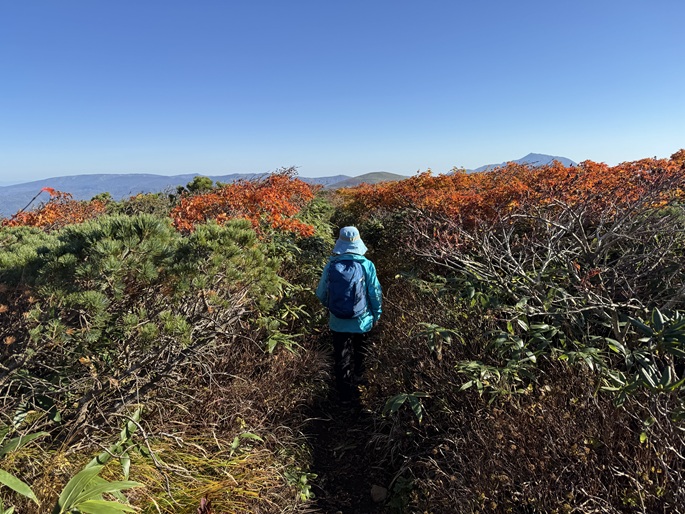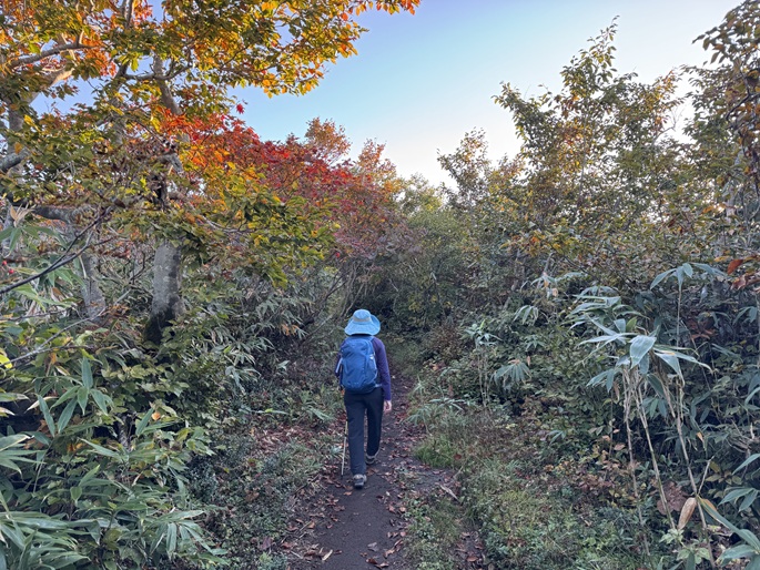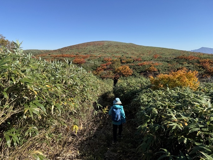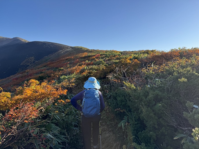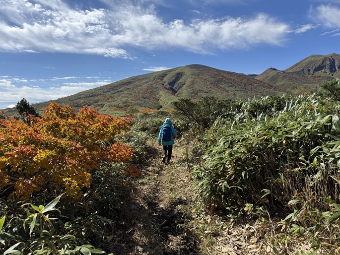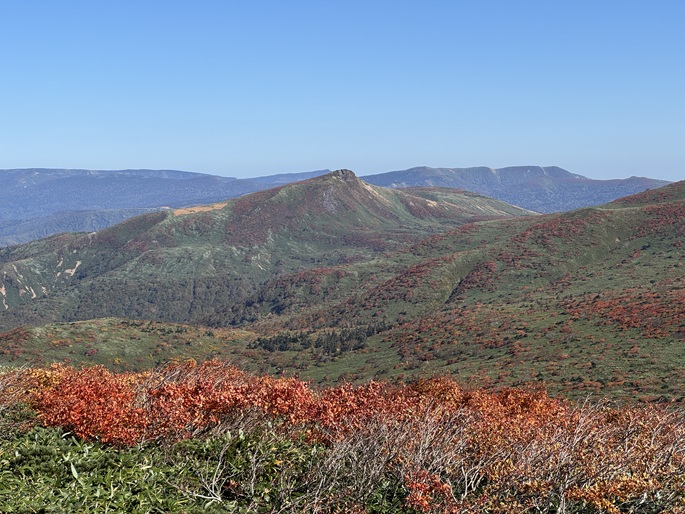 岩手県雫石町・秋田県仙北市の横岳(1582m) ・ 湯森山(1471m) ・ 男岳(1623m)を結んで登った。 図らずも期待していた稜線の紅葉よりもムーミン谷の紅葉が一番印象に残った。