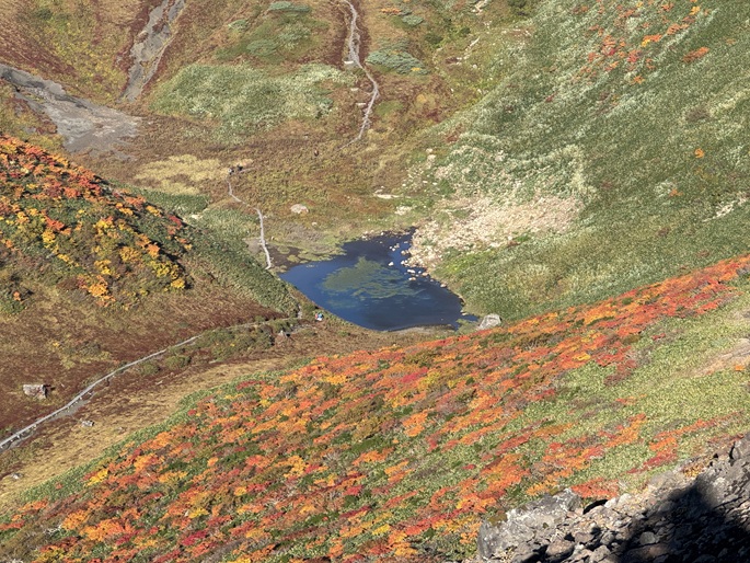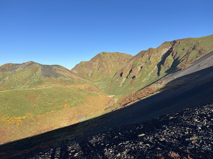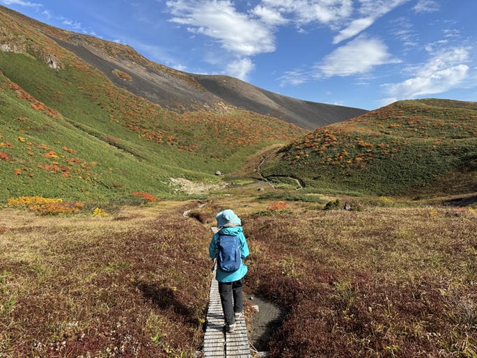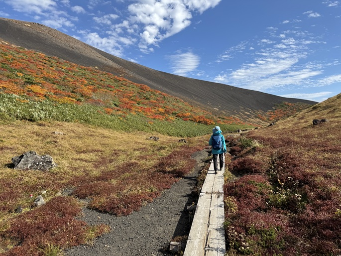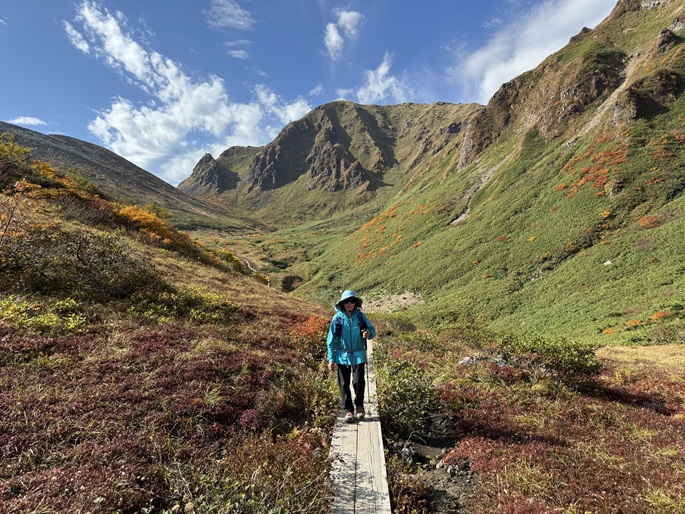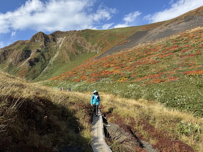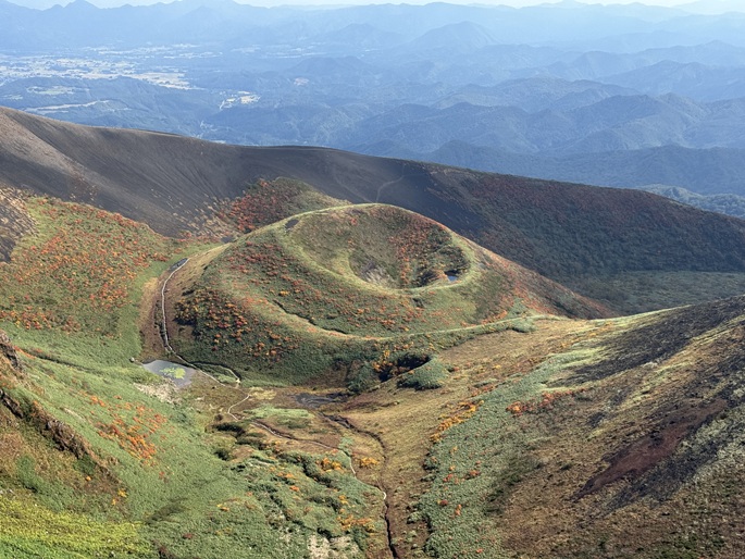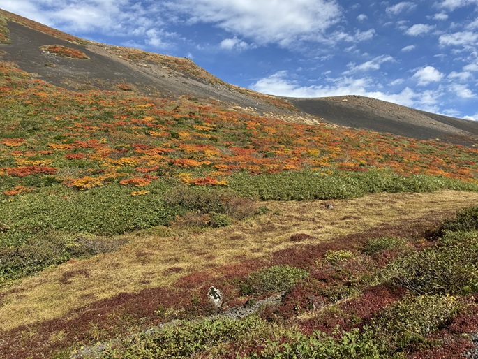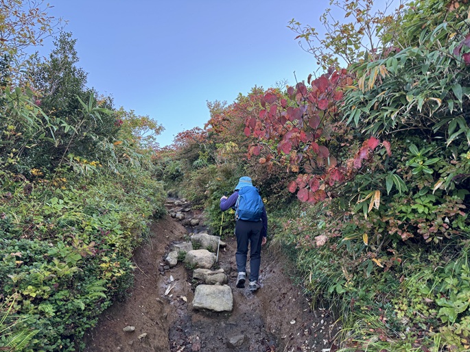 岩手県雫石町・秋田県仙北市の横岳(1582m) ・ 湯森山(1471m) ・ 男岳(1623m)を結んで登った。 図らずも期待していた稜線の紅葉よりもムーミン谷の紅葉が一番印象に残った。
