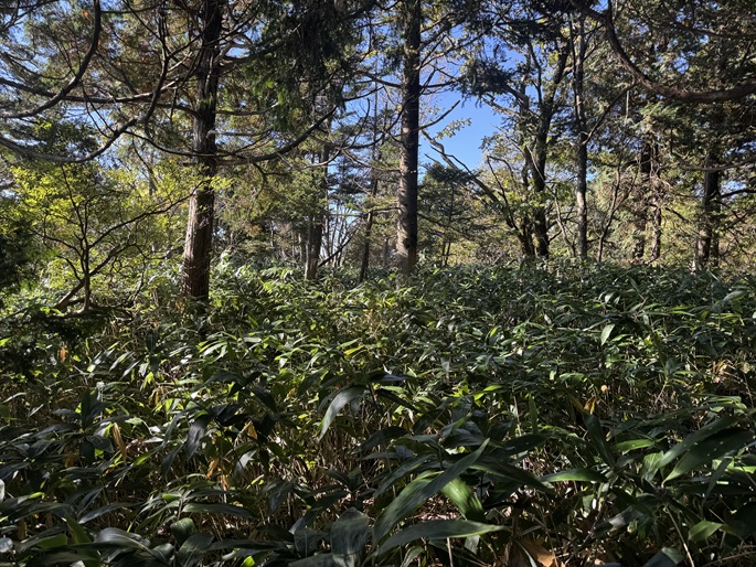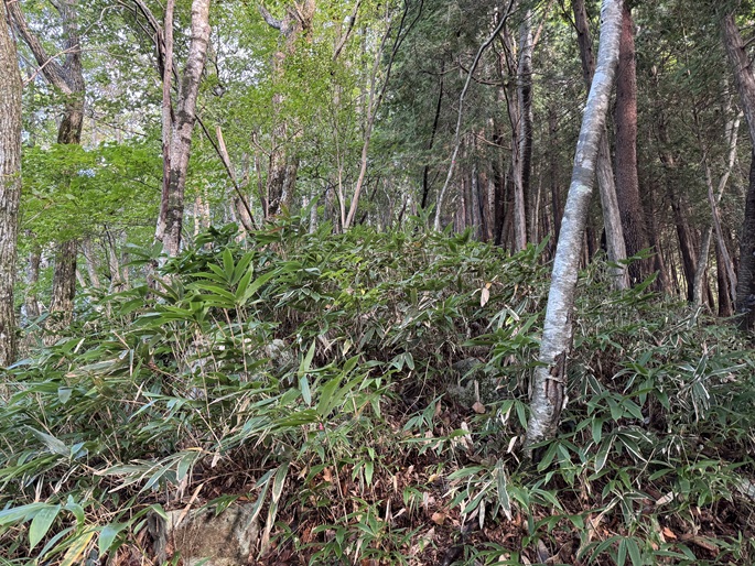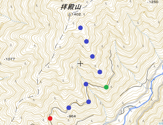 岐阜県下呂市・中津川市の拝殿山(1402m*ぎふ百山)を登った。 笹藪の区間は予想よりも短くて助かったが、地味な山頂の三角点は笹藪の中で探すのに苦労した。