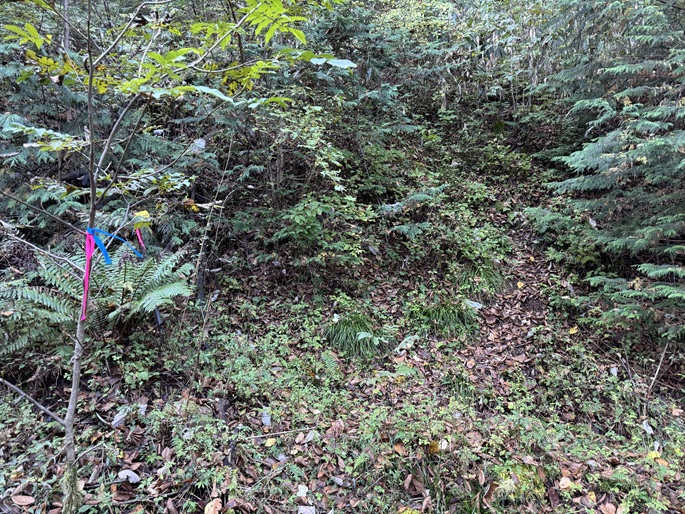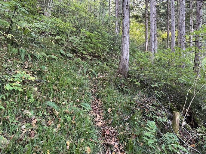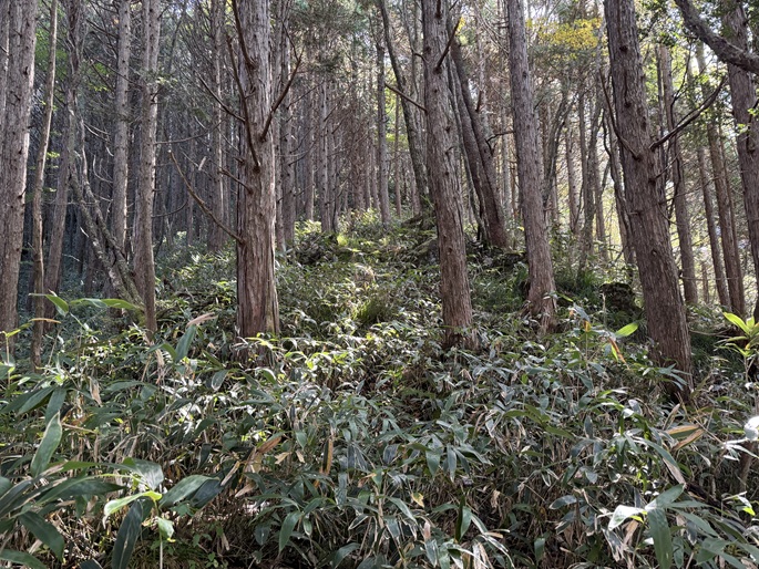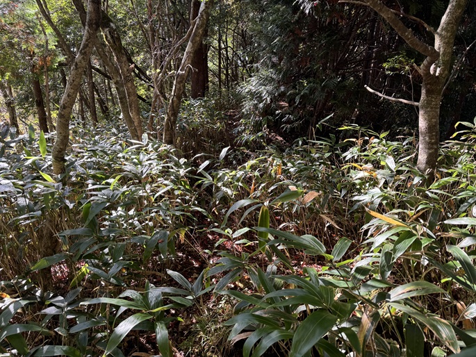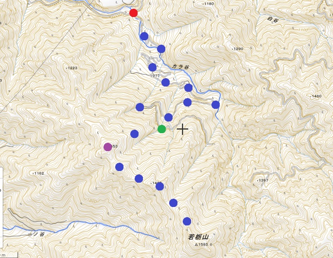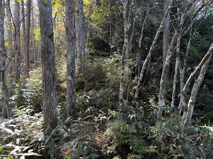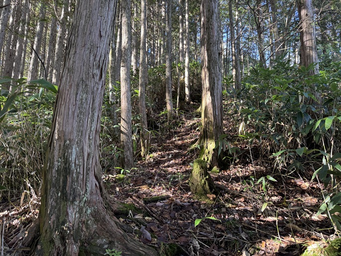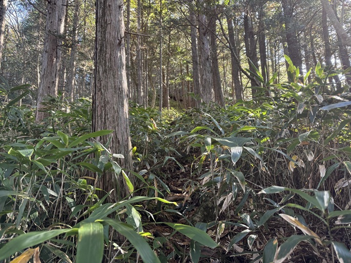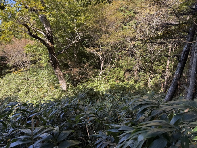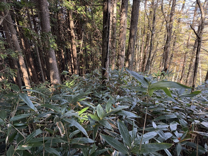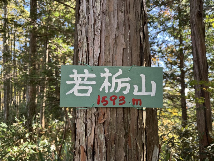 岐阜県下呂市の若栃山(1592m*ぎふ百山)を登った。 林道の起点から1時間半ほど荒廃した林道を歩いて反射板の巡視路入口へ。 入口から反射板までの踏み跡は破線以上だったが、巡視路から先は破線程度となり、最初と最後の区間の笹藪が酷かった。 笹藪に埋もれた山頂には愛好家が設置した新旧二つの山名板があった。