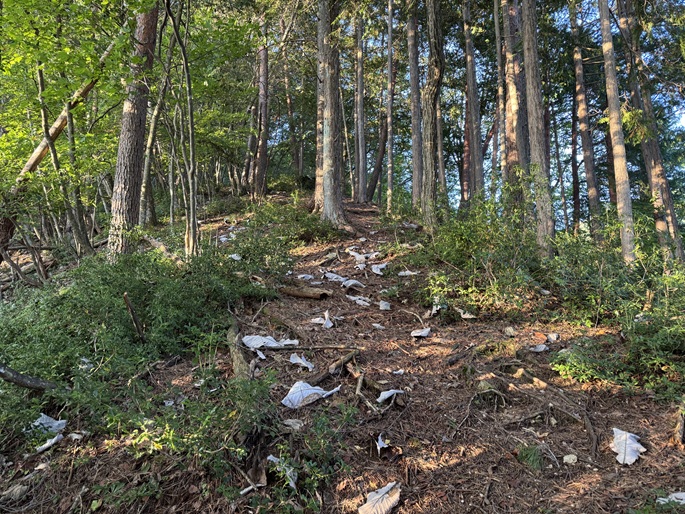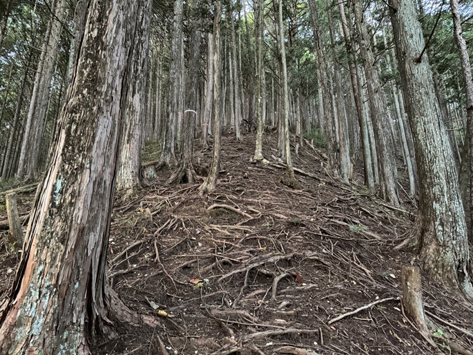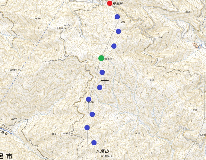 岐阜県下呂市の八尾山(1100m*ぎふ百山)を柿坂峠から5本の送電線の鉄塔を繋ぐ巡視路を利用して登った。 登頂は容易だったが、山頂は雑木に覆われ展望は得られなかった。