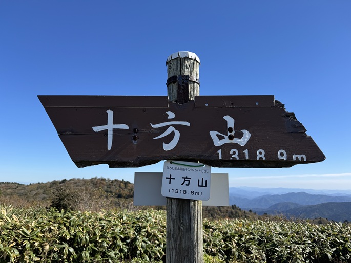 広島県安芸太田町・島根県益田市の恐羅漢山(1364m*日本の山1000*中国名百山)を広島県廿日市市の十方山(1319m*日本の山1000*中国名百山)を経て登った。 明るく開けた十方山の山頂は展望が良く、瀬戸内海越しに四国の山々が遠望されたが、隣の恐羅漢山は十方山の最高点(1328m)に遮られて見えなかった。