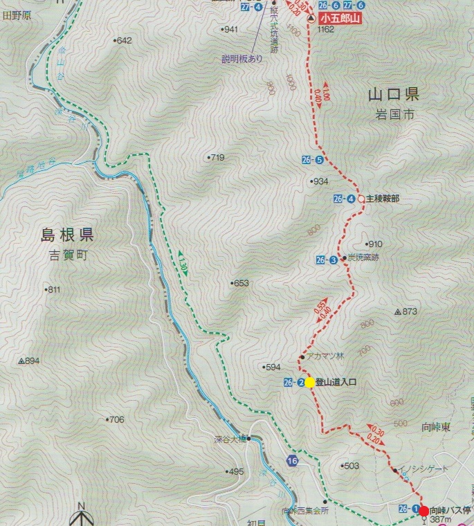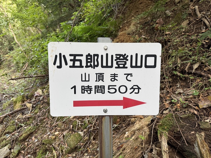 向峠バス停 〜 林道起点 〜 登山口 〜 小五郎山 (往復)