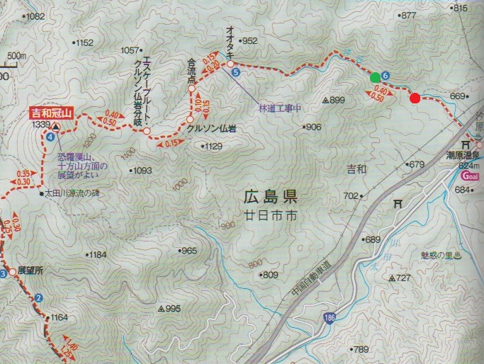 広島県廿日市市の冠山(1339m*日本の山1000*中国名百山)を登った。 一等三角点が置かれた山頂は展望に恵まれなかったが、山頂付近からは昨日登った十方山や恐羅漢山などの山々が望まれた。