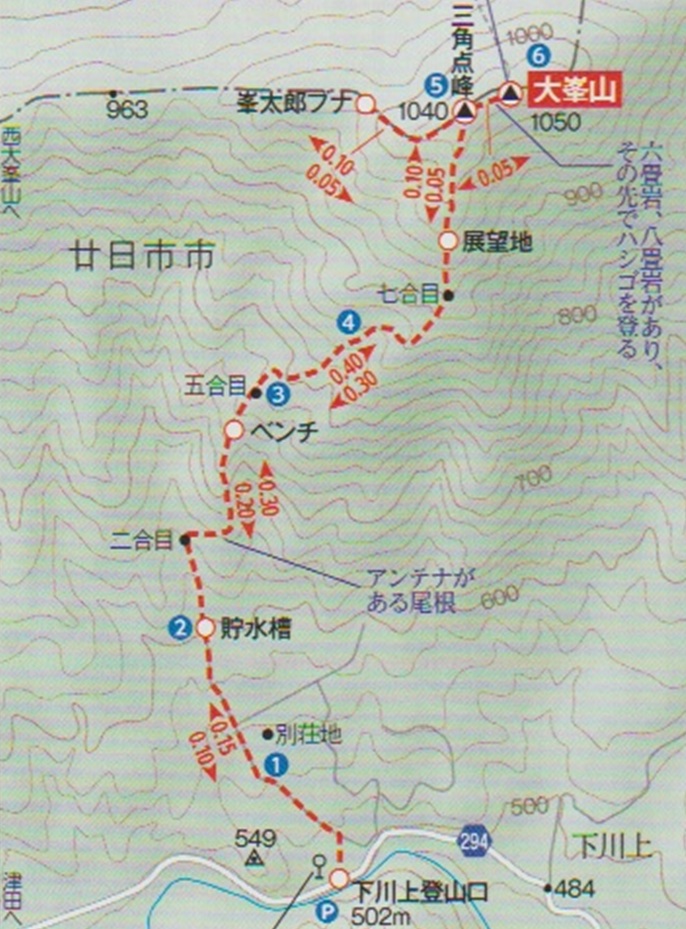 登山口 〜 三角点峰 〜 大峯山 (往復)