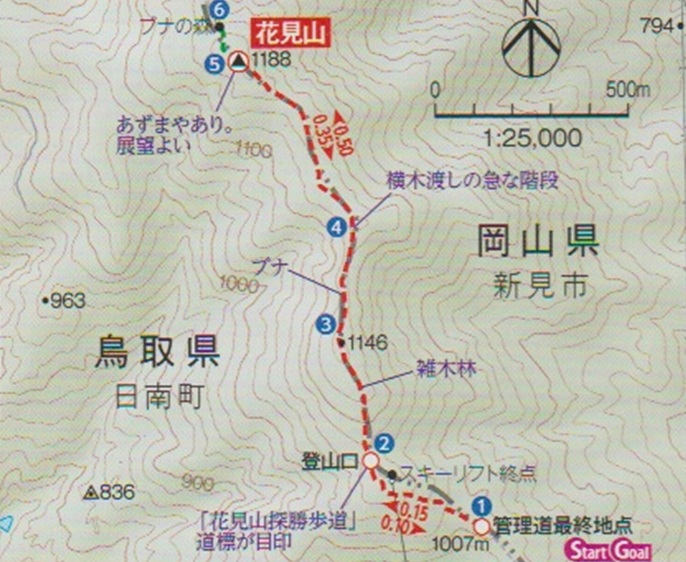 管理道路終点 〜 登山口 〜 花見山 (往復)