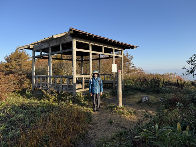 鳥取県日南町・岡山県新見市の花見山(1188m*日本の山1000*中国百名山)を登った。 東屋が建つ一等三角点が置かれた山頂からは下山後に登る大倉山と鬼林山が望まれた。