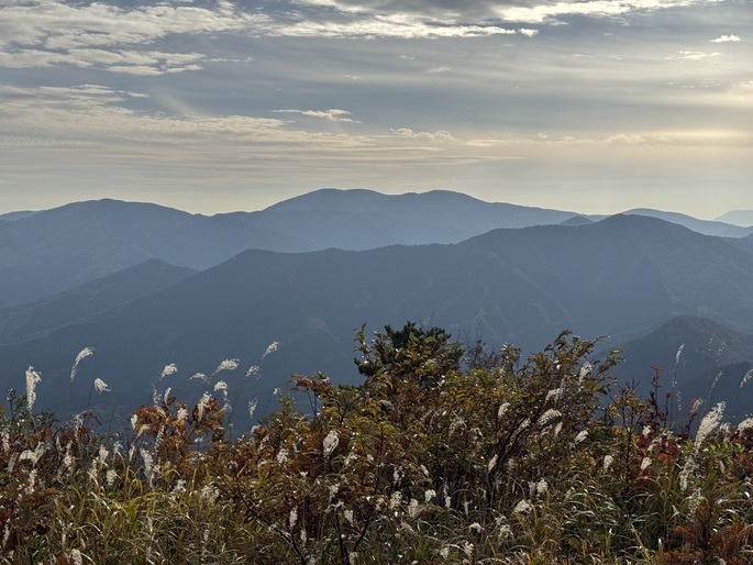 鳥取県日南町の鬼林山(1031m*日本の山1000)を登った。 広い山頂のに建つ電波塔の管理道路が山頂に至る唯一の道で、ススキが刈り払われた山頂からは道後山や船通山が望まれた。