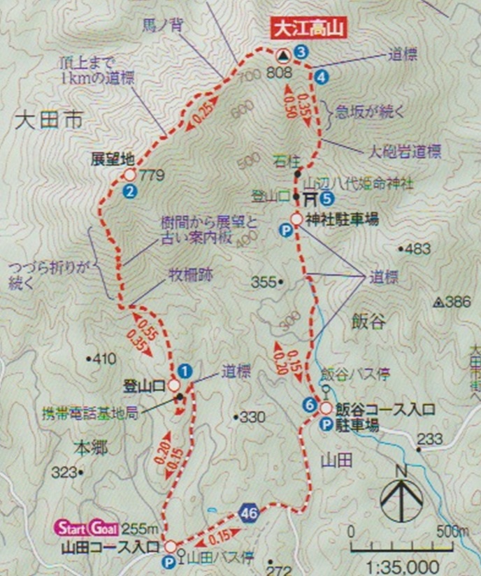 山田コース入口 〜 登山口 〜 大江高山 (往復)