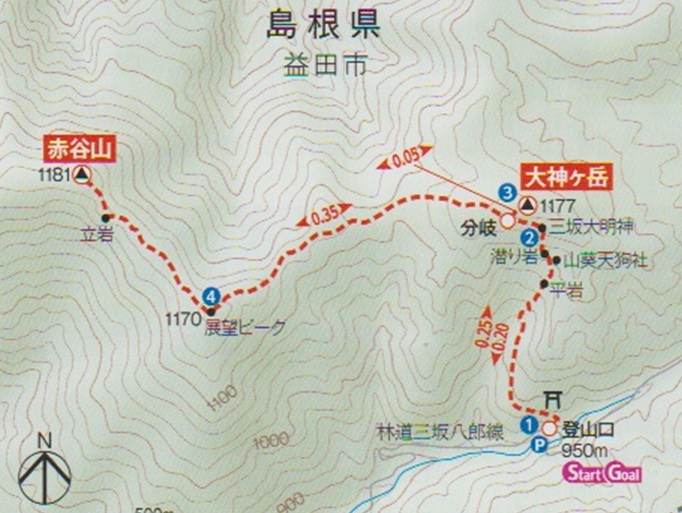 島根県益田市の大神ケ岳(1177m*日本の山1000)を登り、隣接する赤谷山(1181m)まで足を伸ばした。 天気が下り坂に向かってしまい、両山共に山頂からの展望が冴えなかったことが惜しまれた。