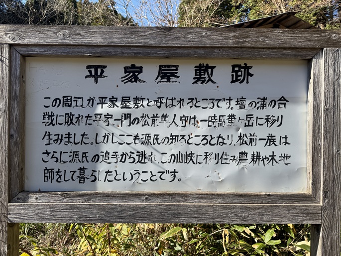 林道駐車地 〜 平家屋敷跡 〜 登山口 〜 平家ケ岳 (往復)