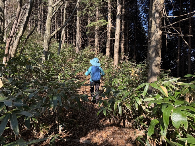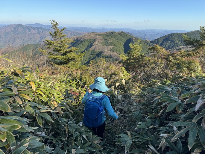 山口県岩国市の馬糞ケ岳(985m*日本の山1000*中国百名山)を登った。 以前は一般的だった鹿野からのルートは荒廃し、山頂まで車道が通じている長野山(1015m)から笹深い幾つものピークを越えながら縦走した。 山頂には一等三角点が置かれていたが、周囲の木々と笹に遮られ展望が得られなかったことが惜しまれた。