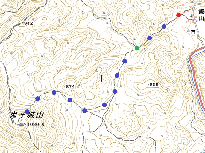 駐車場 〜 登山口 〜 鬼ケ城山 (往復)