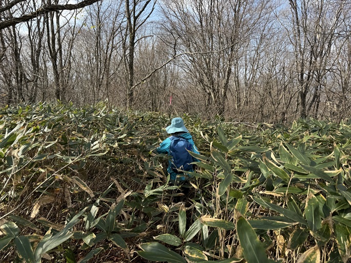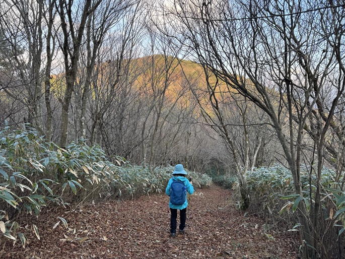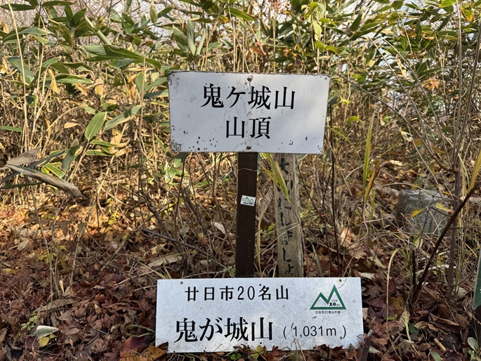 広島県廿日市市・山口県岩国市の鬼ケ城山(1030m*中国百名山)を登った。 笹原の山頂は明るかったが、展望に恵まれなかったことが惜しまれた。