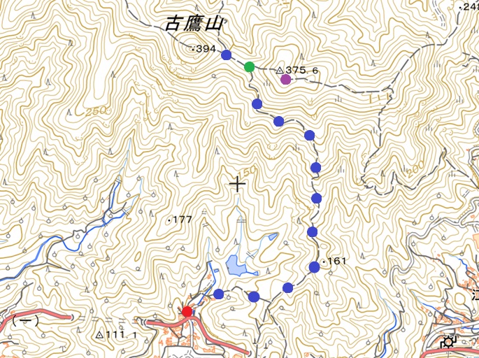 登山口 〜 古鷹山(三角点峰) 〜 古鷹山 (往復)