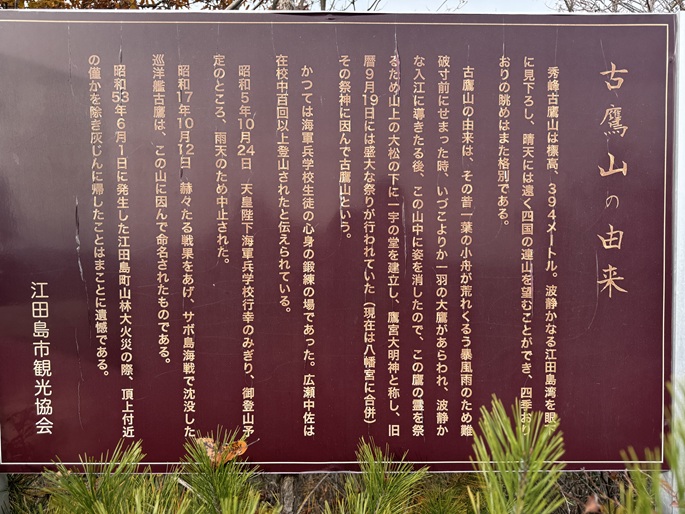 広島県江田島市の古鷹山(376m*中国百名山)を登った。 瀬戸内海では四番目に大きな江田島の最高峰で、四方を海に囲まれた露岩の山頂からの展望は良かった。