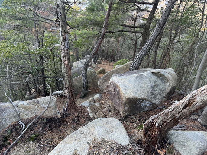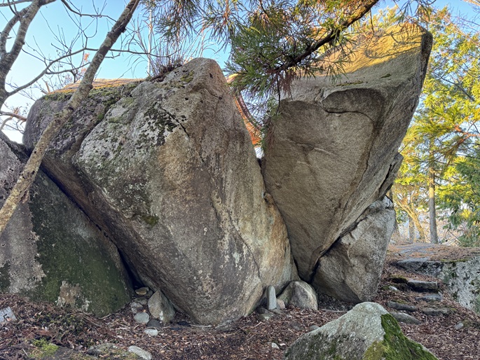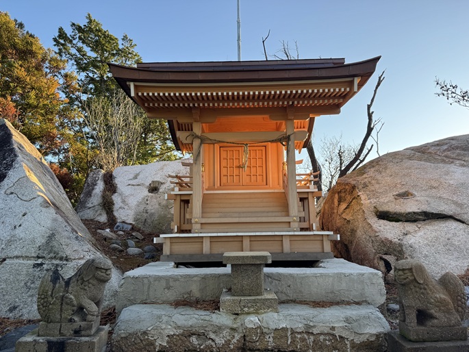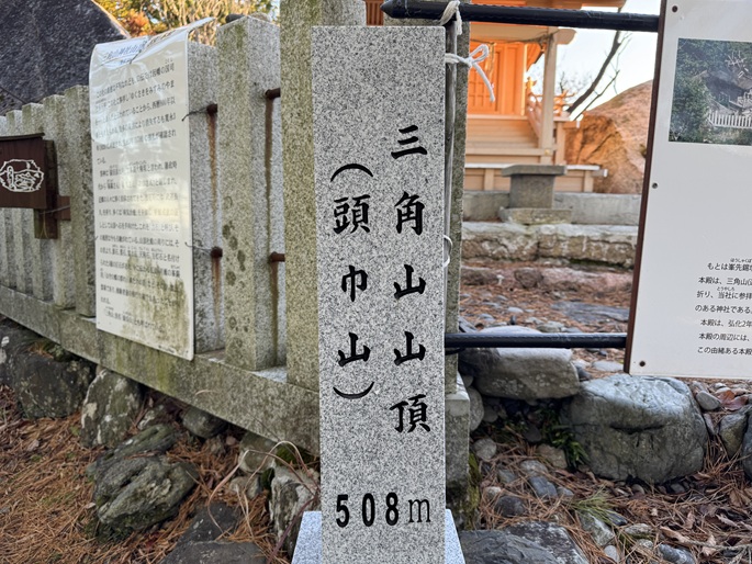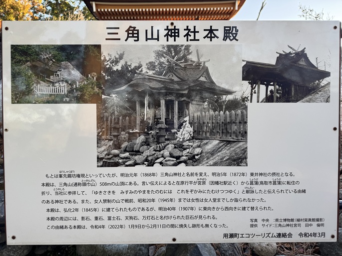鳥取県用瀬町の三角山(508m*中国百名山)を登った。 幾つもの大岩が堆積する山頂には再建された三角山神社本殿が建ち、地元の人に愛されている山のように思えた。