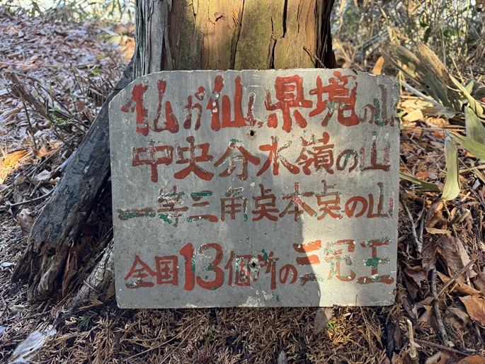 岡山県真庭市・鳥取県倉吉市の仏ケ仙(744m*日本の山1000)を登った。 山頂には苔むした一等三角点が置かれていたが、雑木に囲まれて展望が得られなかったことが惜しまれた。