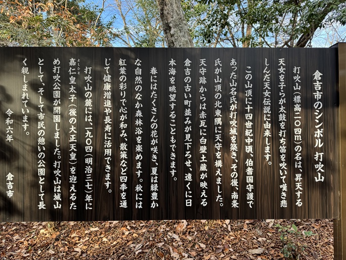 鳥取県倉吉市の打吹山(204m*中国百名山)を登った。 低山ながら森林浴に相応しい山で、広い山頂は打吹城趾となっていた。