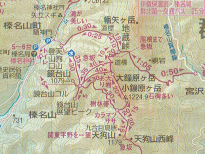 天狗山登山口 〜 鏡台山 〜 鏡台山展望ピーク 〜 天狗山 〜 小鐘原ケ岳 〜 大鐘原ケ岳 〜 地蔵峠 〜 天狗山登山口 (周回)