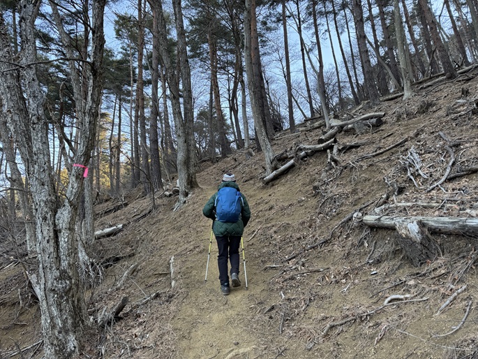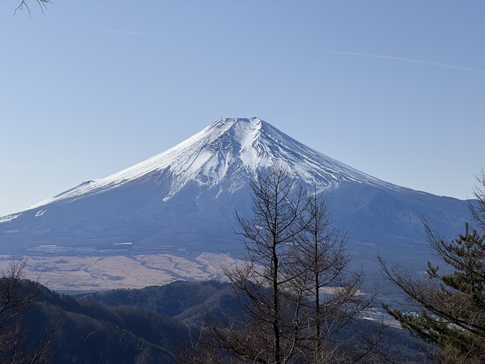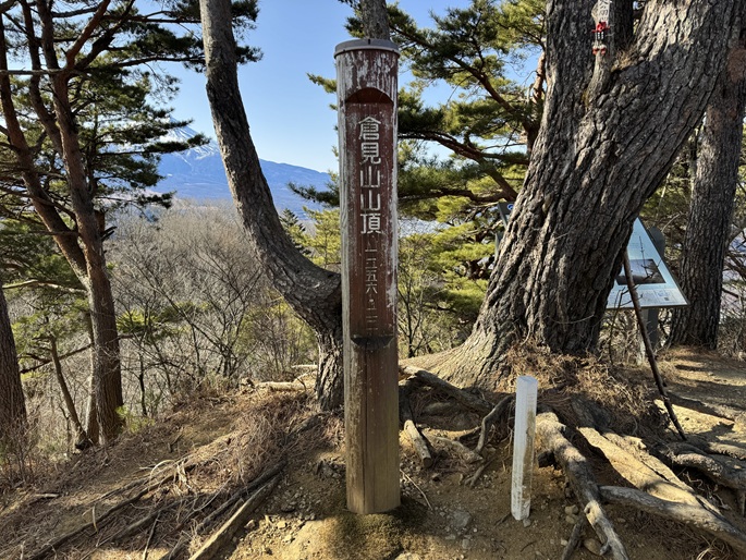 山梨県西桂町・都留市の倉見山(1256m)を登った。 中央自動車道を挟んで三ツ峠山と対峙する山で、随所で富士山の眺めが良かった。