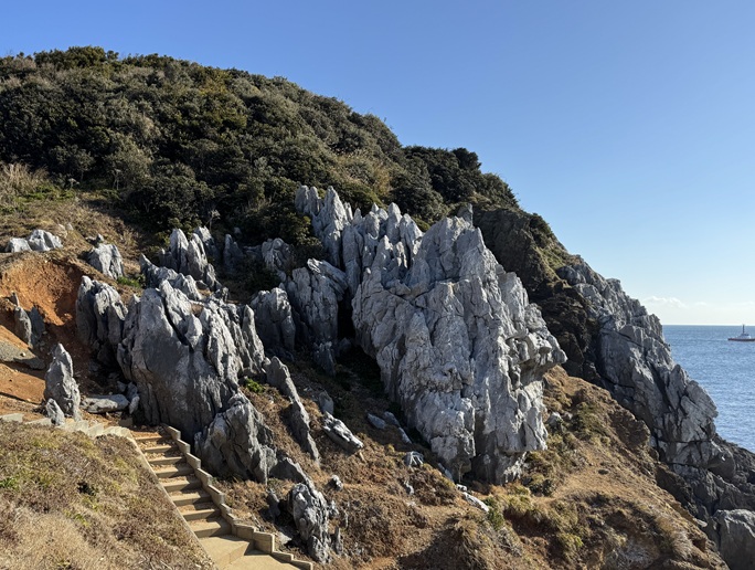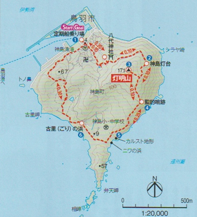 佐田浜 ⇒ 神島漁港 〜 神島灯台 〜 灯明山 〜 監的哨跡 〜 ニワの浜 〜 神島漁港 ⇒ 佐田浜 (周回)