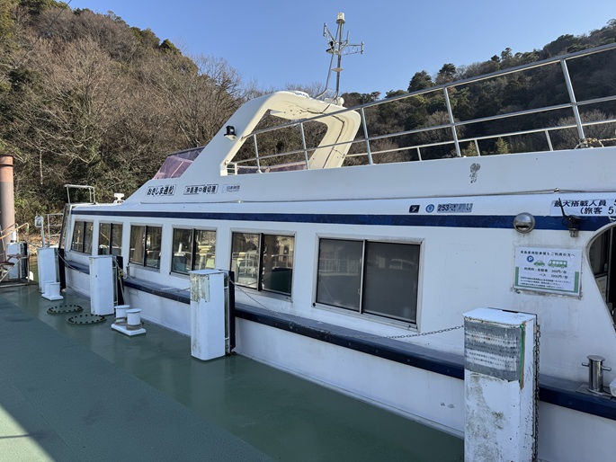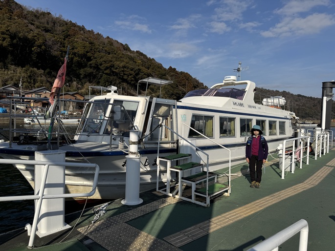 滋賀県近江八幡市の尾山(220m*しま山100選)を登った。 琵琶湖に浮かぶ沖島は日本で唯一の淡水湖の有人島で、尾山は三角点のある山としては島内の最高峰だった。 堀切漁港から沖島漁港まで沖島通船の旅客船で所要10分、運賃は片道500円だった。