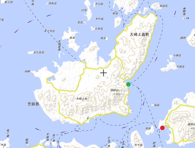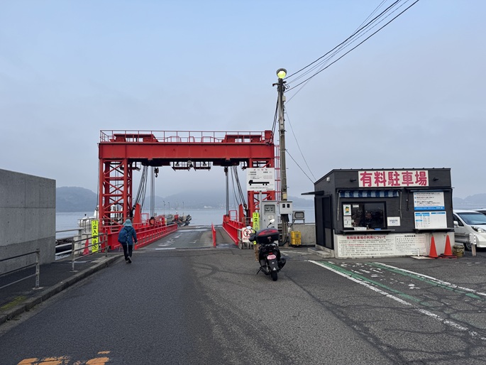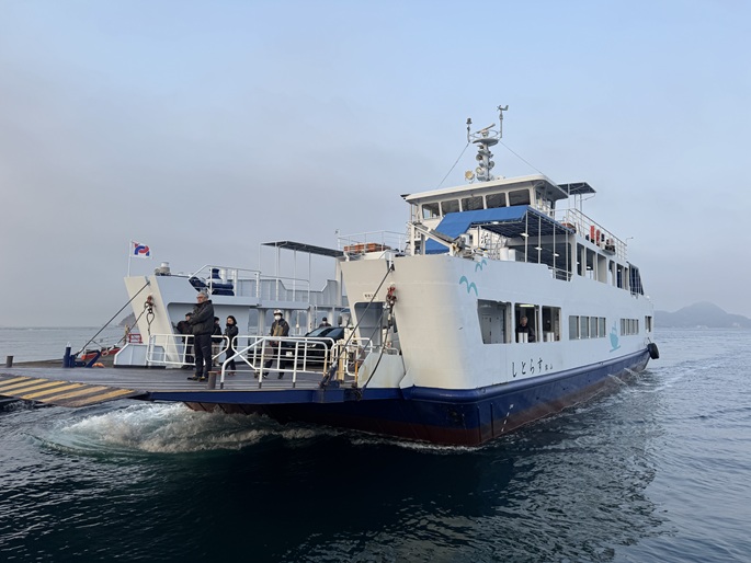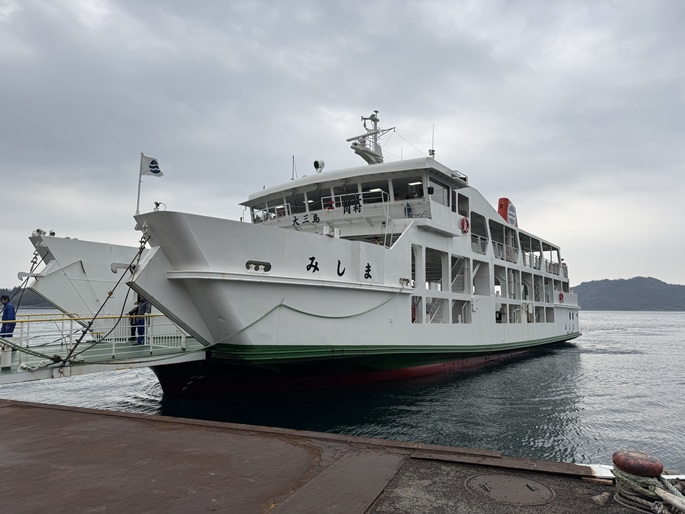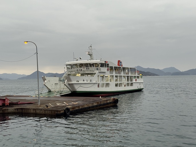 宗方港から大崎上島の木江港まで大三島ブルーラインのフェリーで所要13分・運賃は片道270円だった。