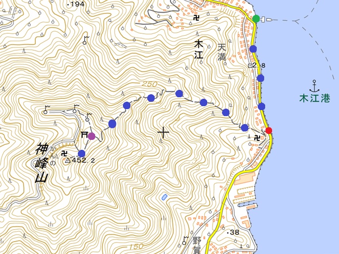 宗方港 ⇒ 木江港(大崎上島) 〜 登山口 〜 石鎚神社 〜 神峰山 (往復)