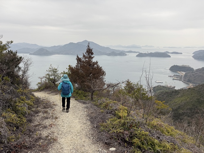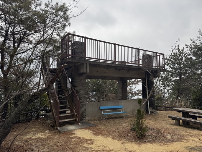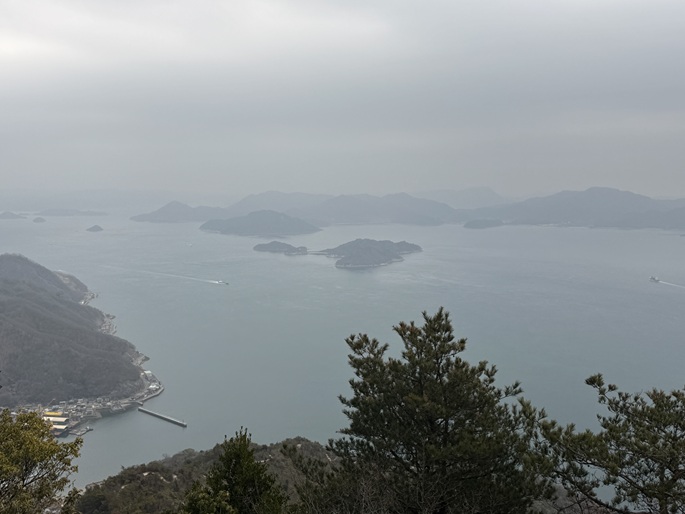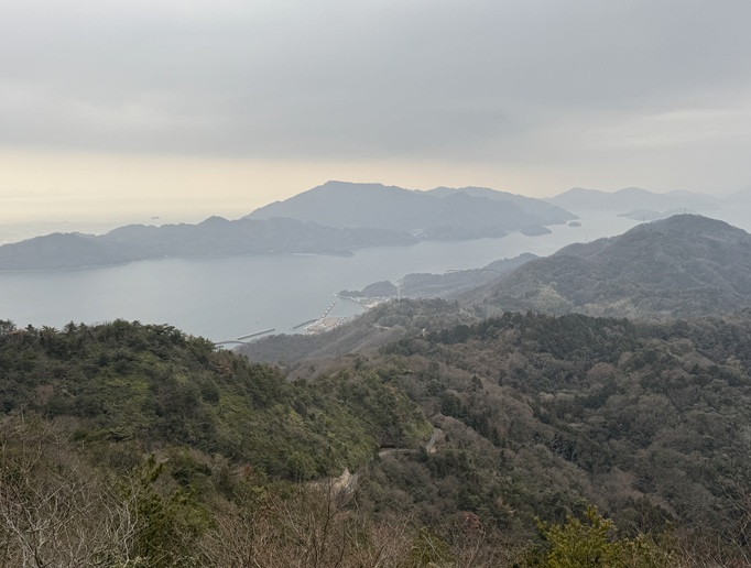 広島県大崎上島町の神峰山(452m*しま山100選)を登った。 山頂の展望台からの眺めは良かったが、曇天だったことが惜しまれた。