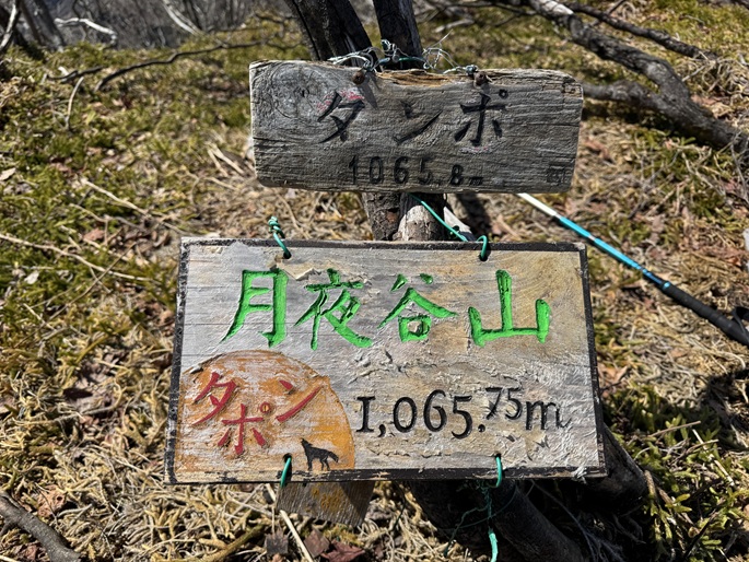 岐阜県揖斐川町・本巣市のタンポ(1065m*ぎふ百山)を登った。 地形図には山名が記されていない寂峰だが、山頂には一等三角点の点名となる月夜谷山を記した山名板が置かれていた。