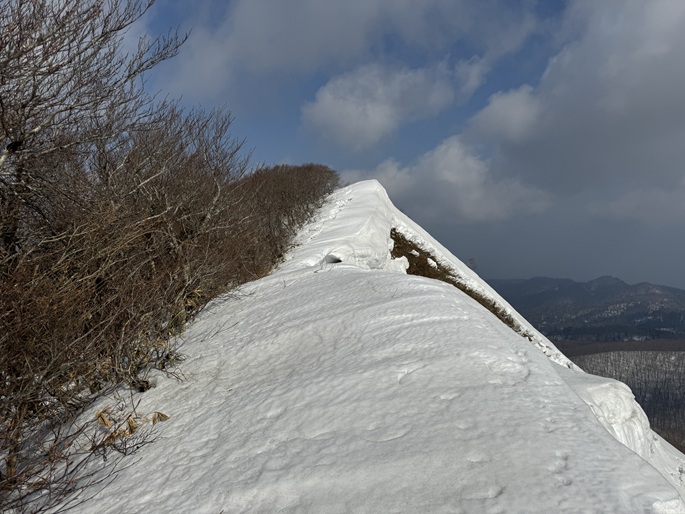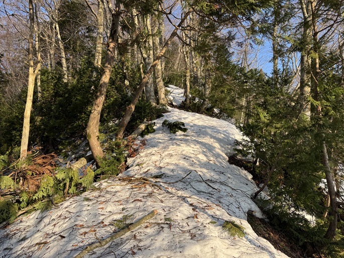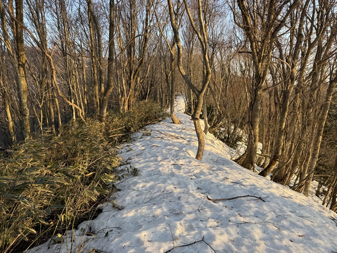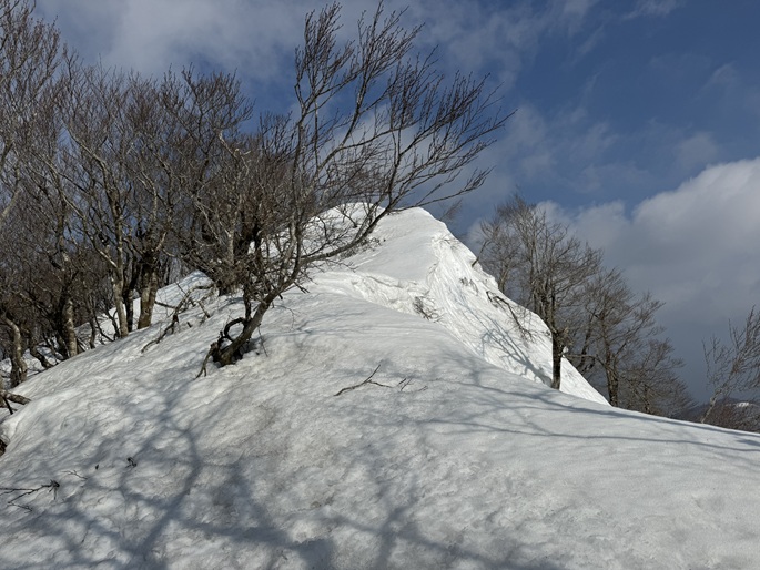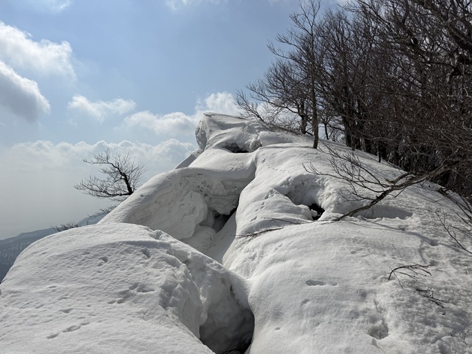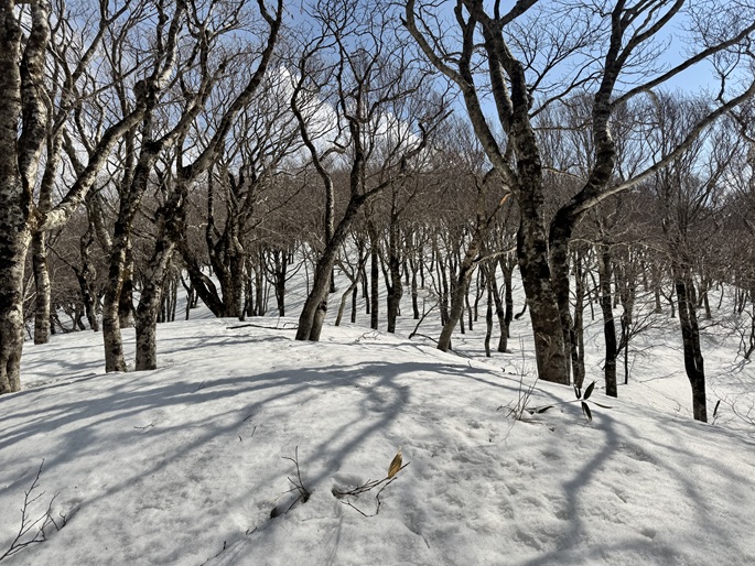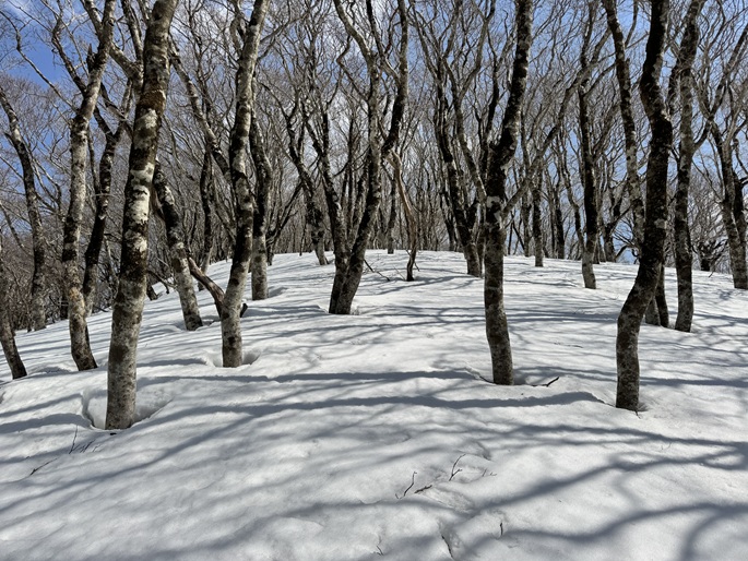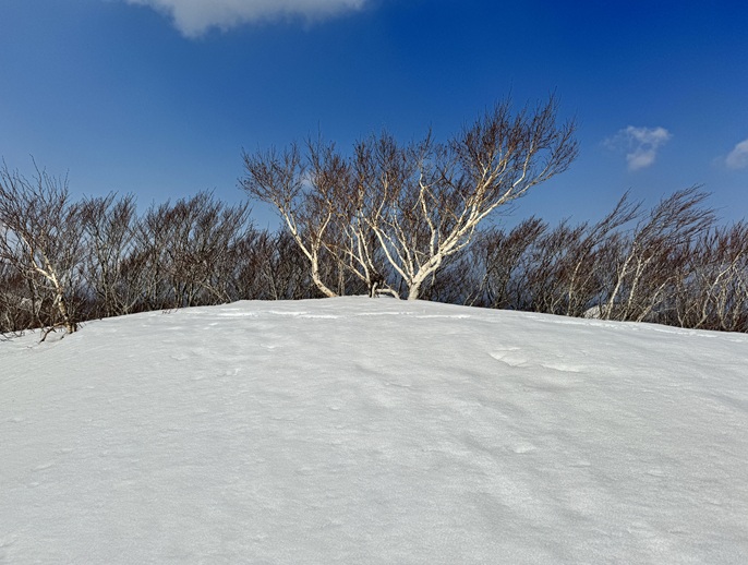 気象条件が難しい津軽半島の先端に位置するため長年に亘って登頂の機会を窺っていたが、図らずも三連休直後だったことで愛好家のトレースにも恵まれ、両峰共に登頂は予想よりも容易だった。