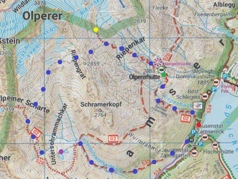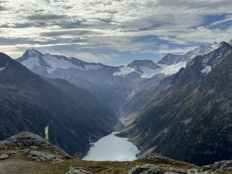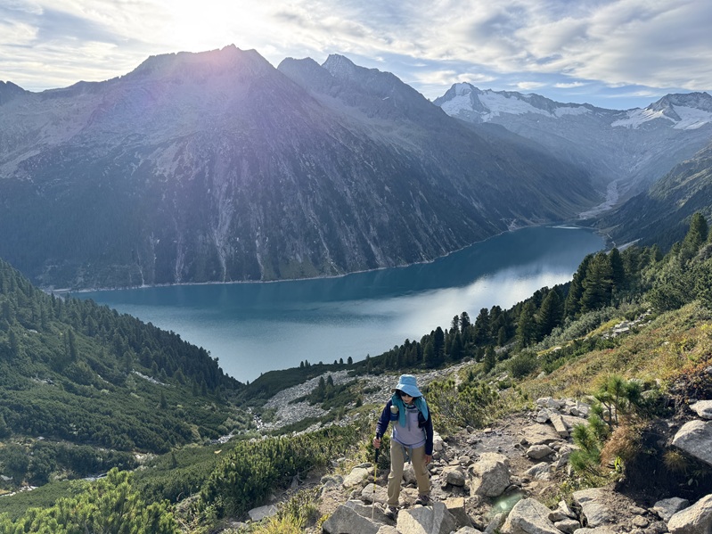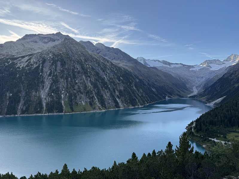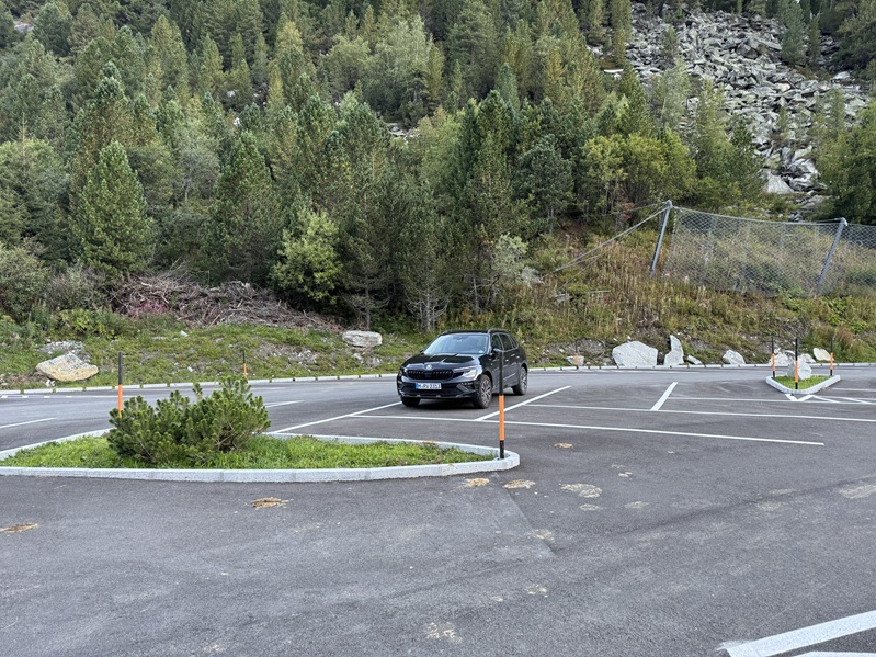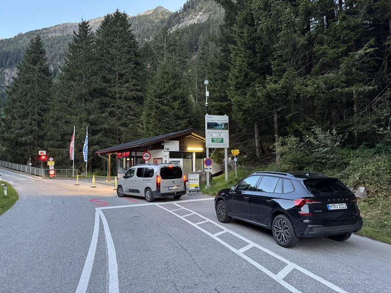 9月8日、アパートからA12号線(インタール・アウトバーン)・169号線を1時間40分(105キロ)走ったシュレーゲイス・シュタウフゼー(湖)の8キロ手前にゲートがあった。 信号機は赤だったがゲートのバーは開いていたので、前の車のドライバーと相談して赤いボタンを押すと数分後に信号機が青に変わったのでゲートを通過する。 登山口のシュレーゲイス・シュタウフゼー(湖)は観光地のようで駐車場が幾つもあった。